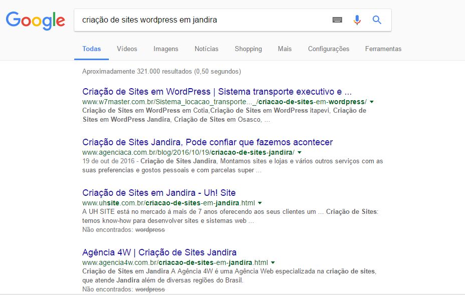 Outra palavra chave que tem sindo muito importante para nossa empresa é CRIAÇÃO DE SITES WORDPRESS EM JANDIRA, que também atingiu a primeira pagina do google, fazendo assim que nosso site recebe muitas visitas diariamente.